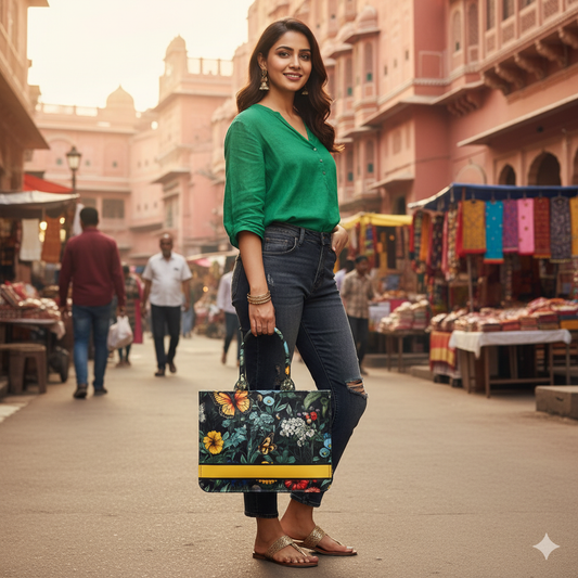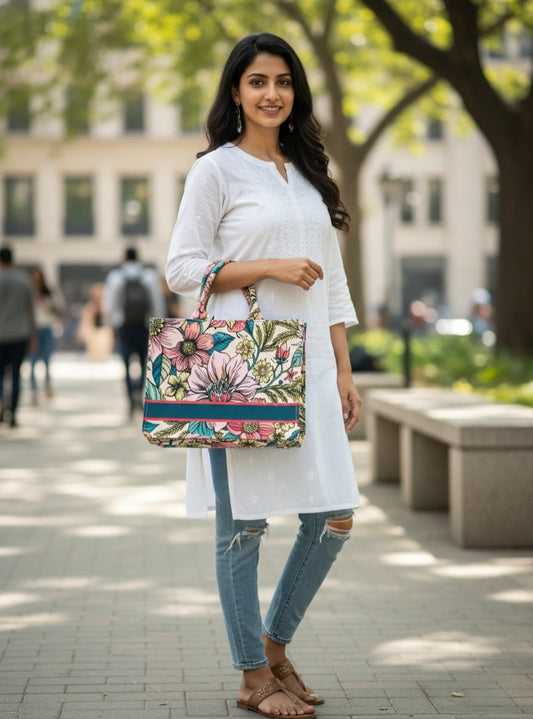 🌸 Customizable Floral Tote Bag – Personalized Name Handbag for Women 🌸