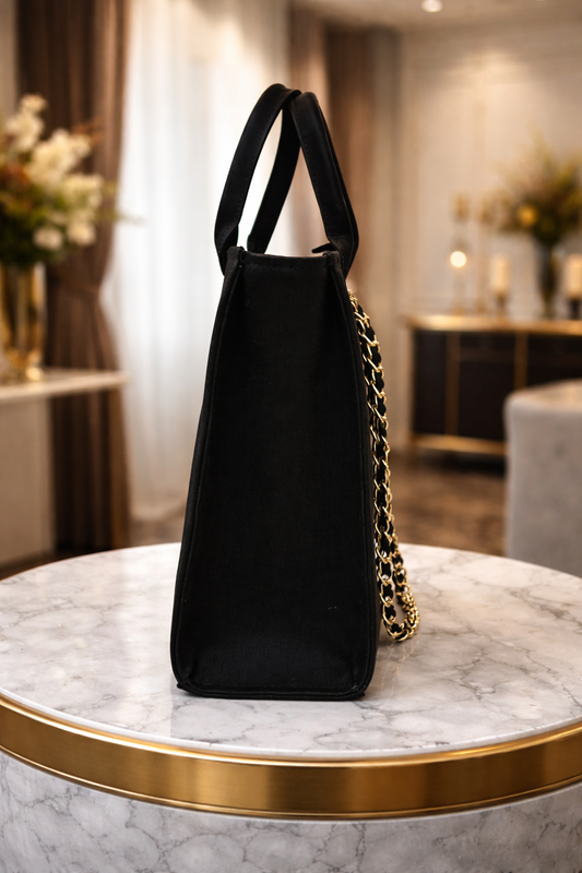 Nixa Style Premium Monogram Tote Bag – Luxury Black Handbag with Gold Chain & Organizer Compartments