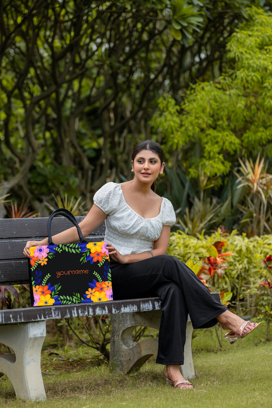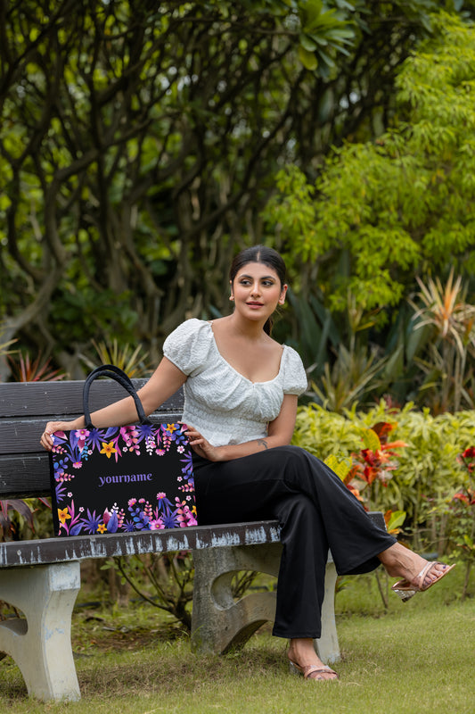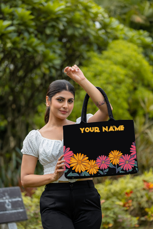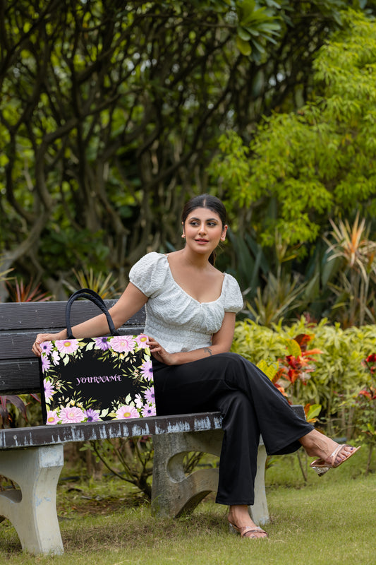 Nixa Style โ Midnight Blossom Customised Tote Bag (Personalised Floral Black Tote)