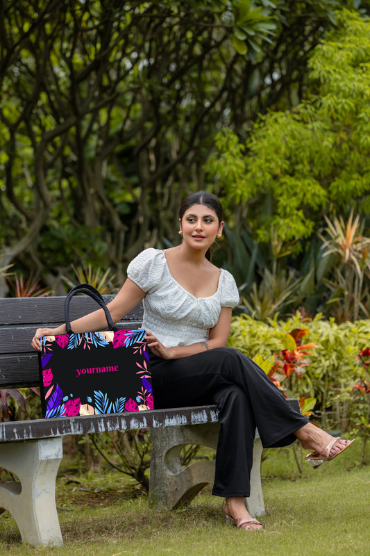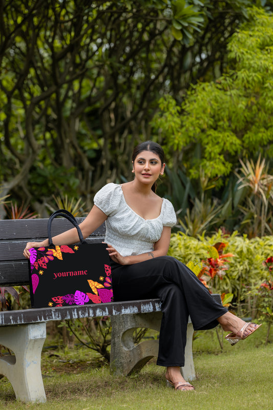 Customized Tote Bag With Floral frame Background